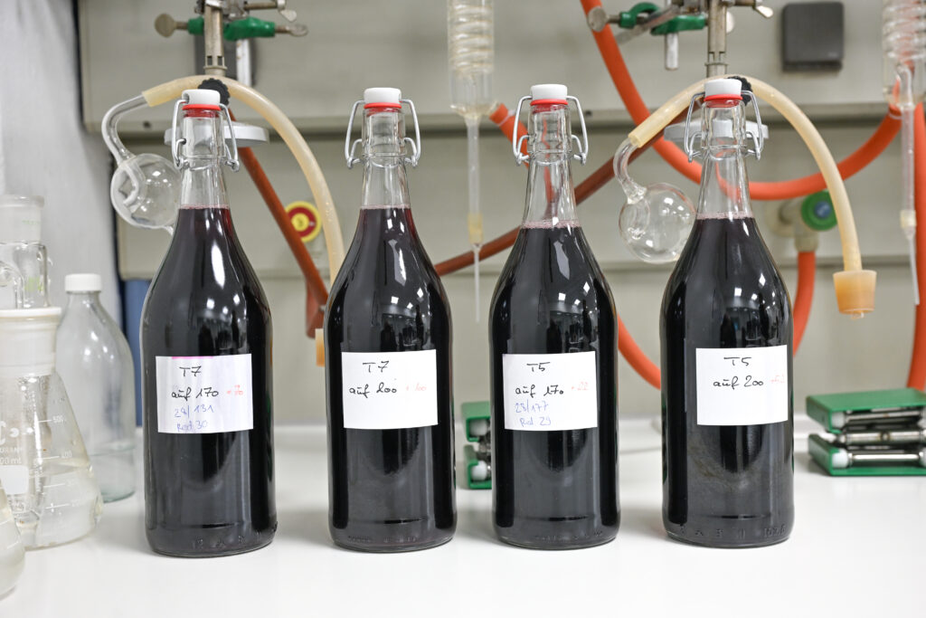 Die verwendeten Weine stammen vor allem aus Süditalien. „Wir brauchen kräftige, farbintensive Weine – die finden wir in Apulien.“ Für Spezialitäten wie den Glühwein Barrique werden hingegen Weine aus der Pfalz verwendet. Der Geschmack soll über Jahre hinweg stabil bleiben, obwohl Wein als Naturprodukt variiert.