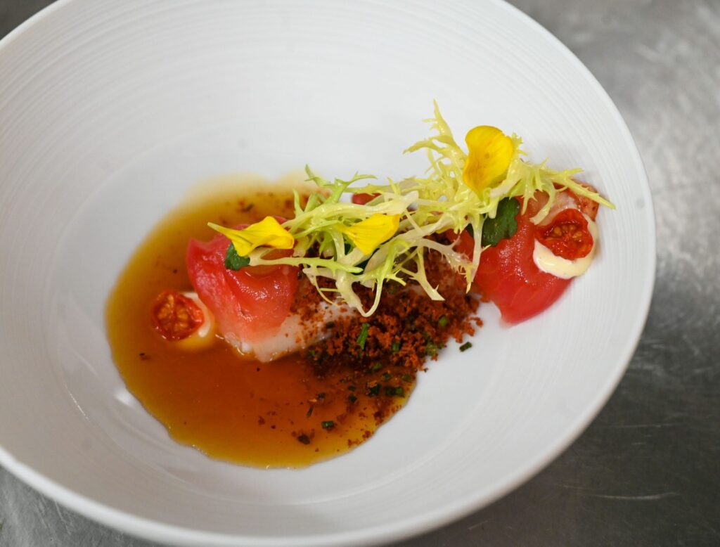 Die Übernahme der Küchenleitung war für den heute 37-Jährigen die Chance, eigene Akzente zu setzen: „Wir wollten natürlich immer regionale Elemente in den Gerichten verarbeiten, gleichzeitig aber weltoffen bleiben, mit Gewürzen etwa oder mit Gartechniken.“ Wagenbach mag es, regionale Gerichte asiatisch zu interpretieren – aktuell auf der Karte: Stubenküken mit Tikka masala und Mango -, kocht aber ebenso gerne klassisch französisch.