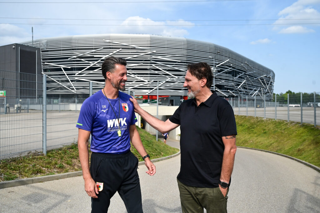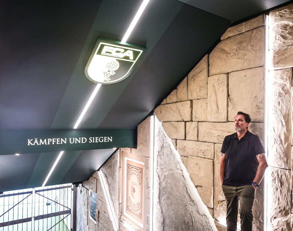 Krapf: Es gibt auf der einen Seite den FC Augsburg 1907 e. V., den eingetragenen Verein. Alle Mannschaften von der U9 bis zur U15 befinden sich unter dem Dach des e. V. Ich bin Präsident dieses Vereins und damit oberster Vertreter von mittlerweile knapp 30.000 Mitgliedern. Der Präsident wird vom – von den Vereinsmitgliedern gewählten – Aufsichtsrat des e. V. eingesetzt und wählt die weiteren Präsidiumsmitglieder aus. Das hat sich absolut bewährt, wie die Entwicklung des letzten Vierteljahrhunderts zeigt. Die Mannschaften von der U17 bis zur Bundesligamannschaft sind in einer ausgegliederten Kapitalgesellschaft angesiedelt. Deren Geschäftsführung wird vom Präsidium, also von meinem Gremium, eingesetzt. Auf diese Art wird beim FC Augsburg die 50+1-Regel gelebt. Seit 2023 ist Michael Ströll der gesamtverantwortliche Geschäftsführer. Er führt die Geschäfte, in die Analyse gehen wir am Ende der Rückrunde und nach Saisonende ausschließlich mit der Geschäftsführung. Ich erwähne das, weil die bewusste Einhaltung der Hierarchien einer unserer größten Erfolgsfaktoren ist. Trotzdem stehen wir mit Michael Ströll regelmäßig auch zwischen den Analysen im Dialog und wissen sehr genau, welchen Anteil er an der positiven Entwicklung der letzten drei Jahre hat. Darum haben wir seinen Vertrag auch bis 2029 verlängert.